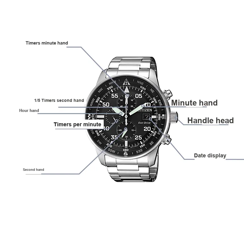 CITIZEN Ecology Drive Collection Светильник Кварцевый механизм Нержавеющая сталь Ремешок Часы Мужские Черный циферблат