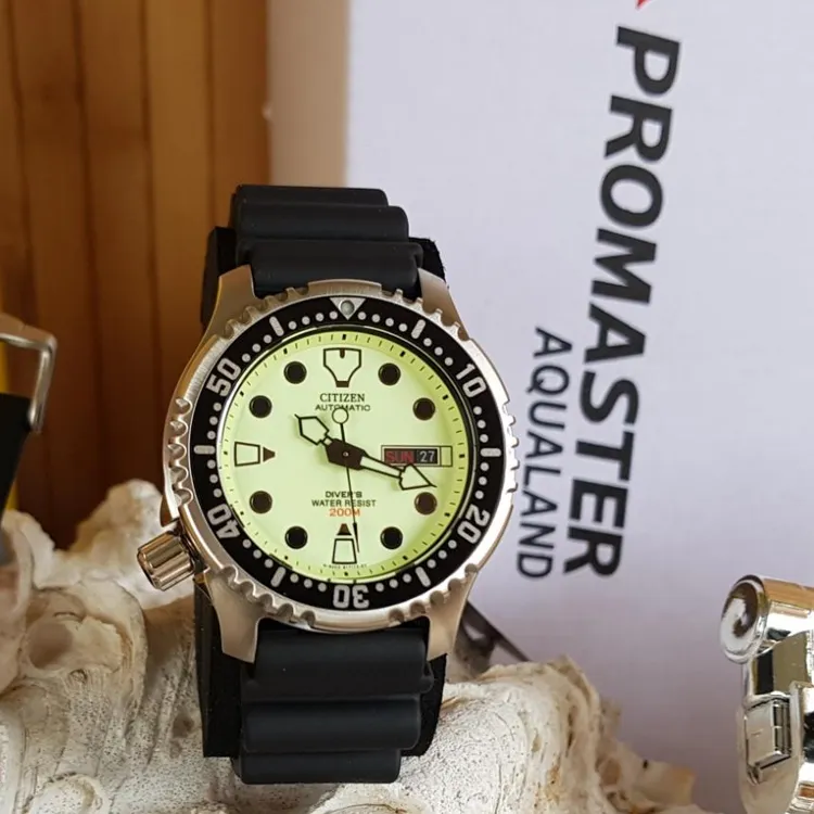 CITIZEN PROMASTER Series Автоматический Механический Механизм Резиновый Ремешок Часы Мужские Зеленый Циферблат