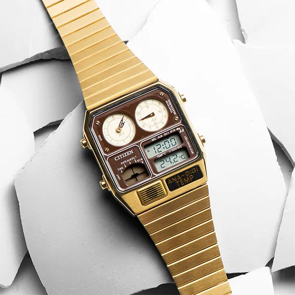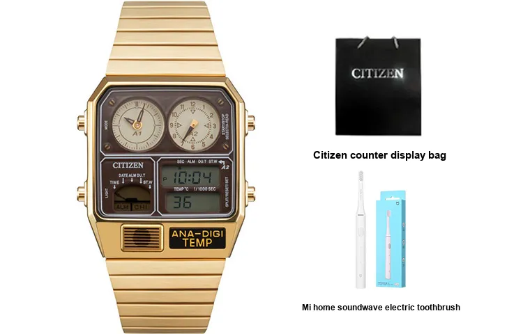 CITIZEN Кварц Механизм Нержавеющая Сталь Ремешок Часы Унисекс Золотой Циферблат