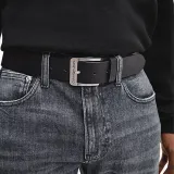 CK Calvin Klein Logo Carving Шпилька Кожаные ремни Мужской Черный Ширина 4CM