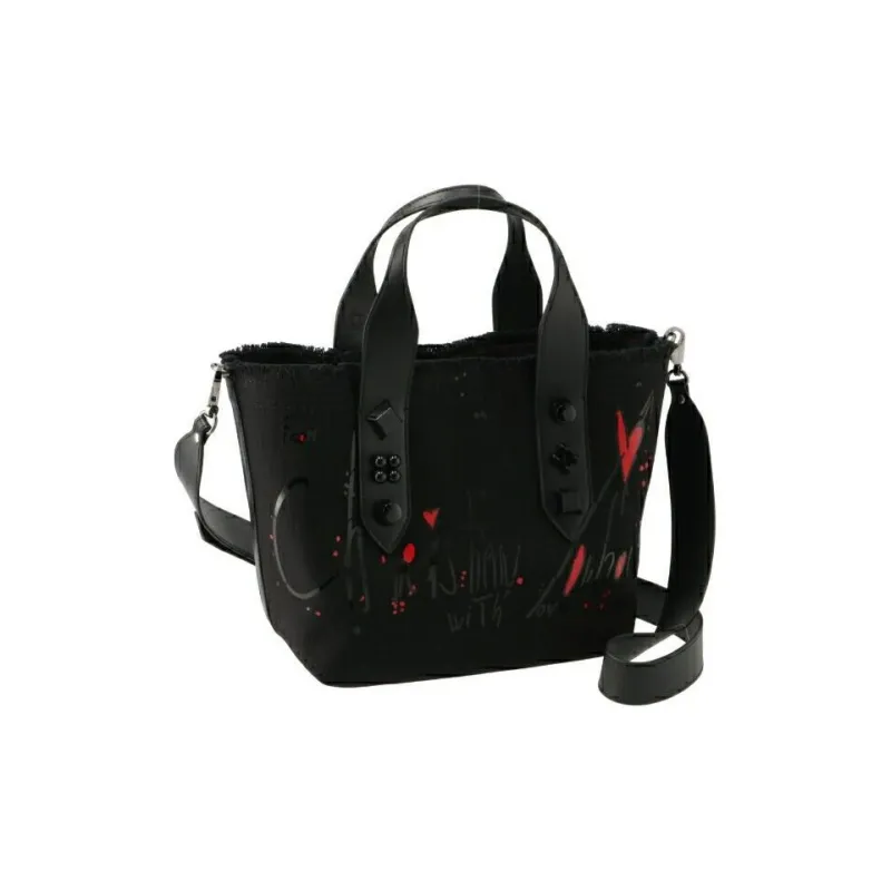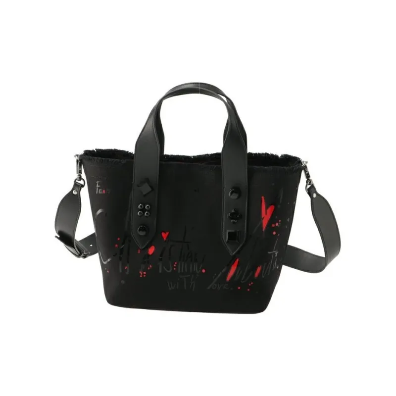 CL LUBOTING Холст Телячья кожа Тоут Сумка Сумка для покупок Сумка через плечо Сумка Маленькая Унисекс Черная