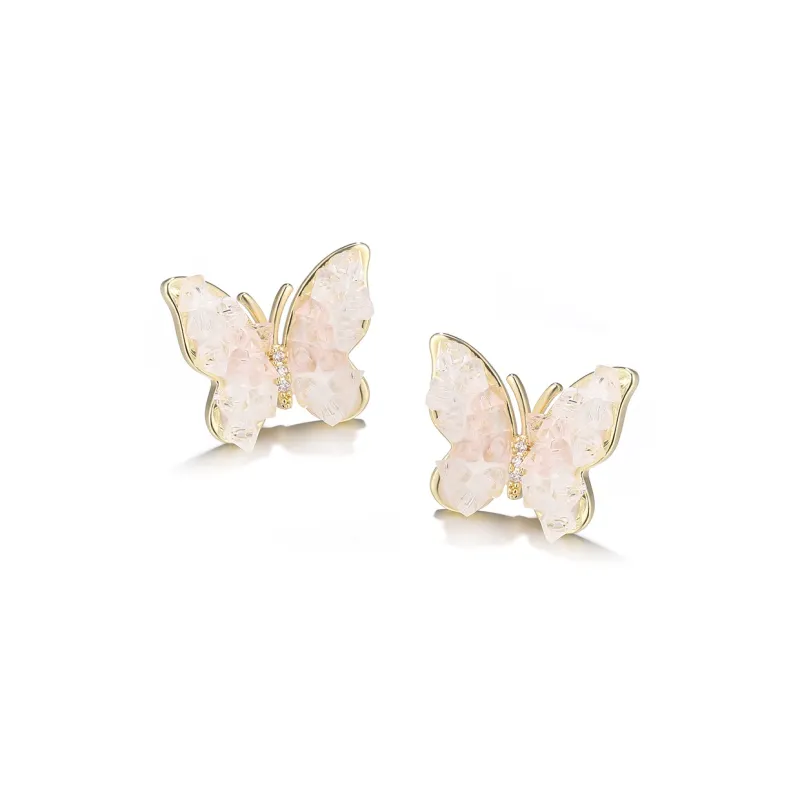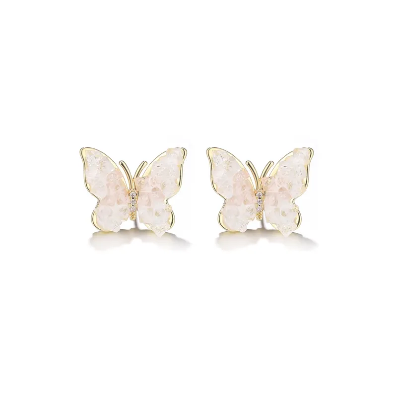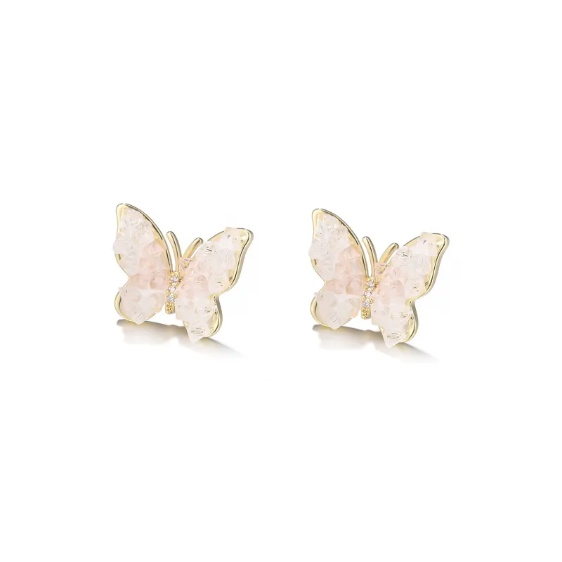 Стиль:Весенние ледяные розовые серьги-гвоздики с бабочкой