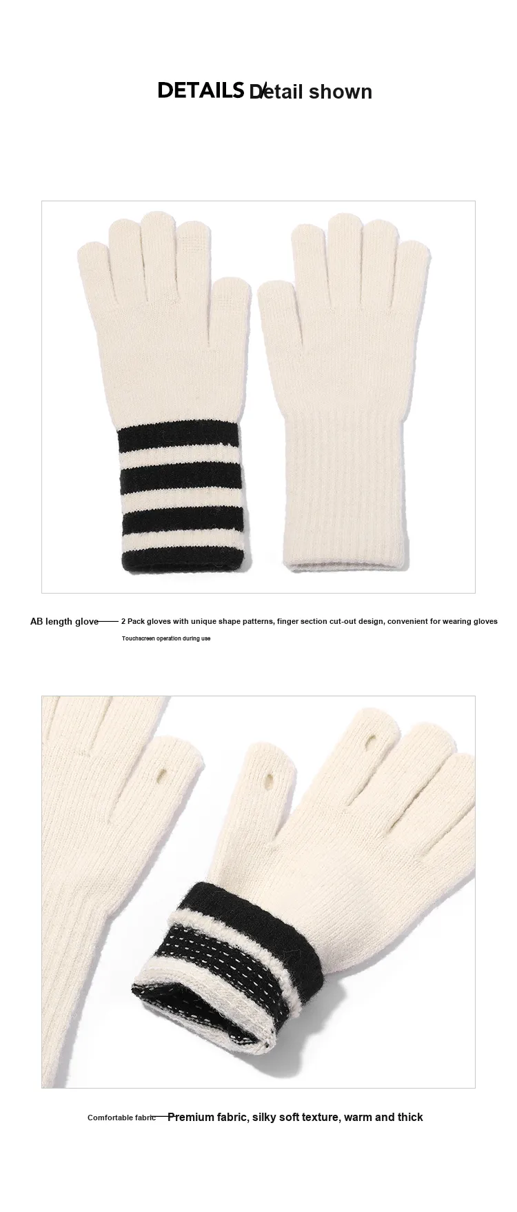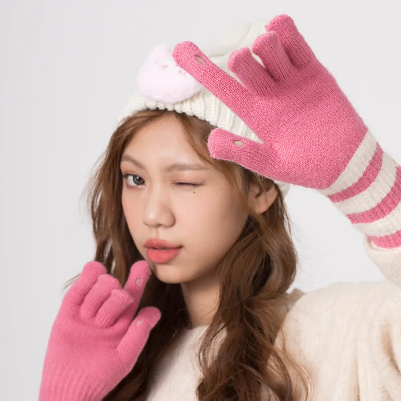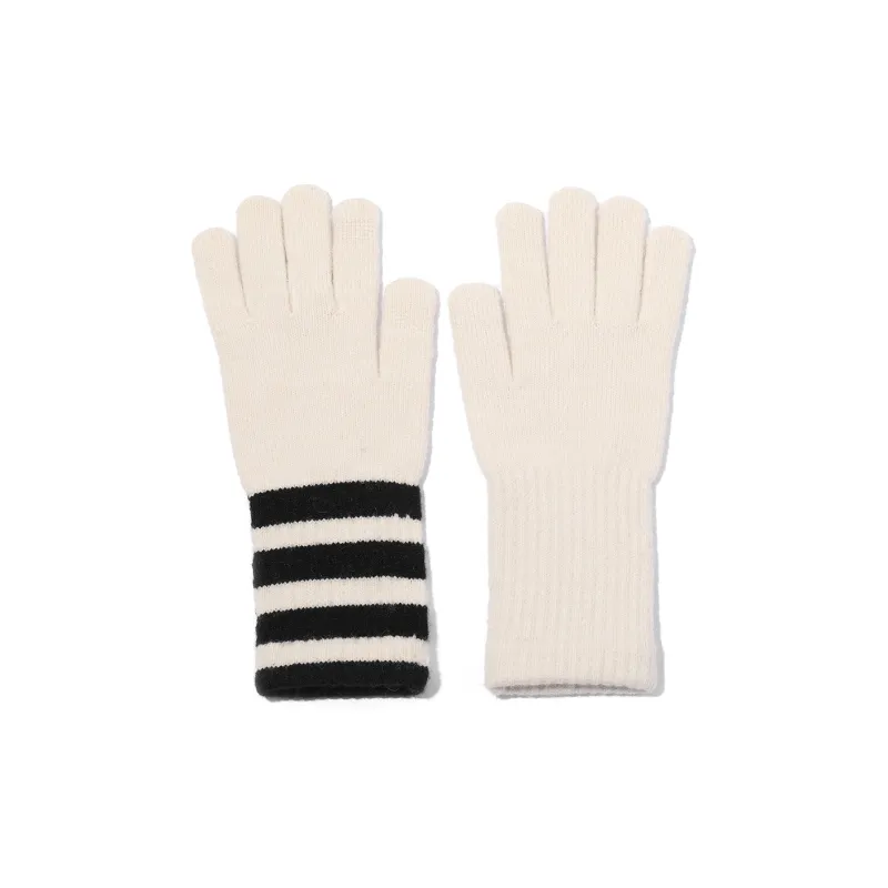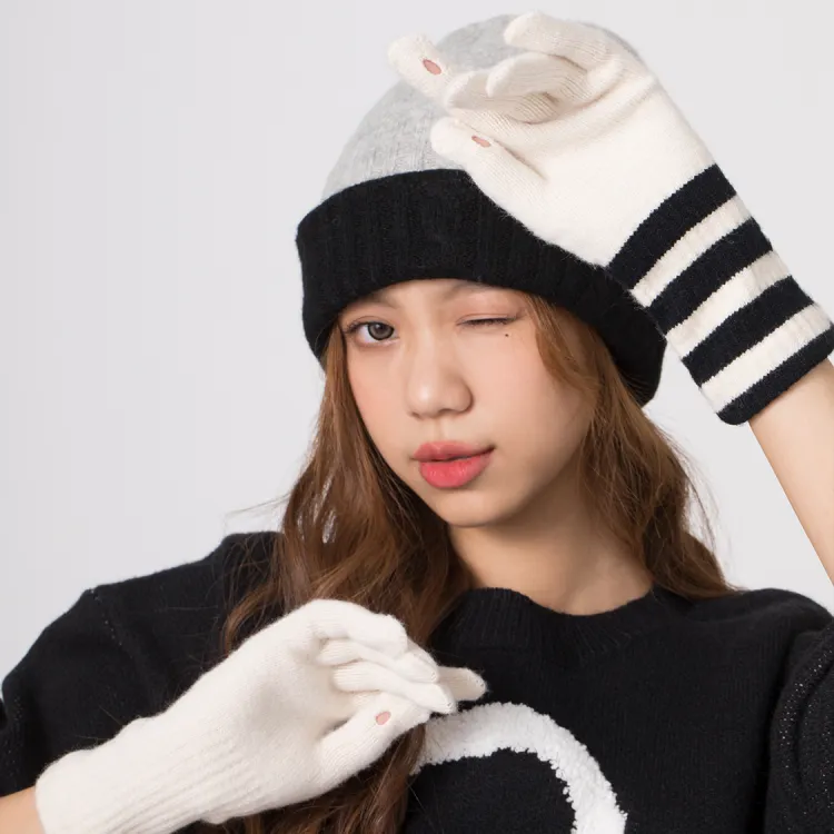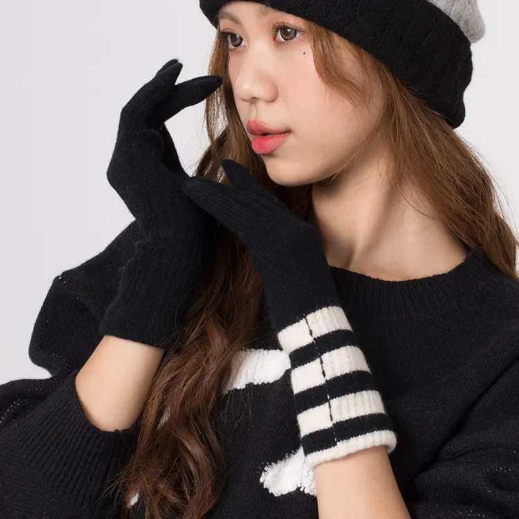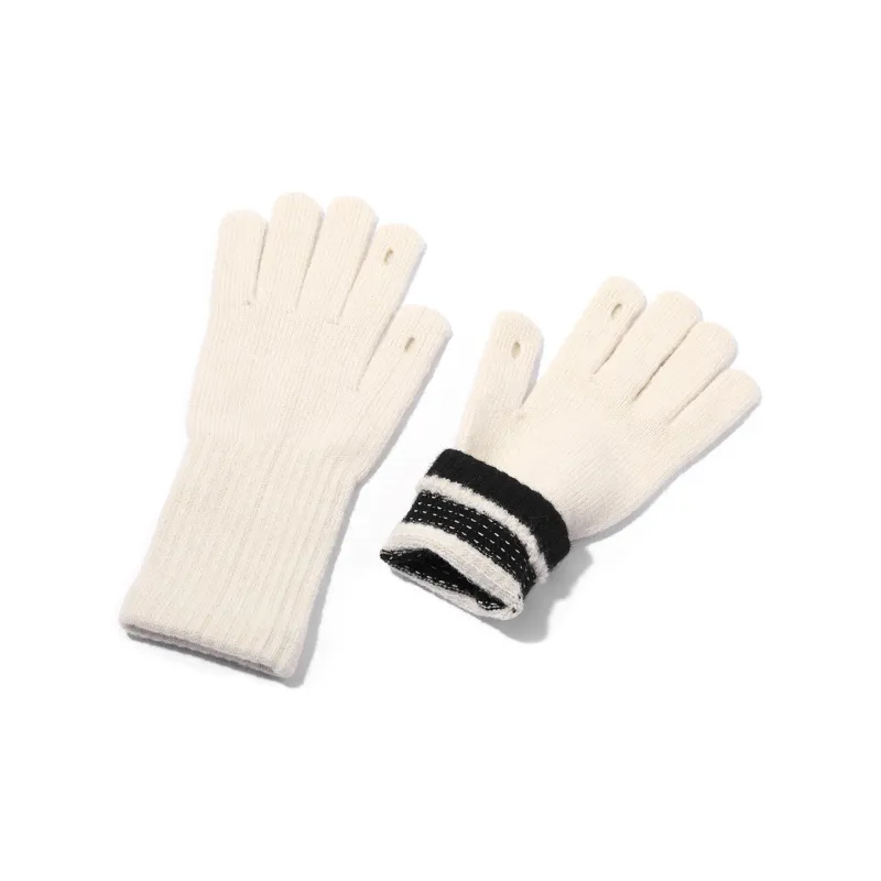 Clect Разделенные пальцы Вязаные перчатки Женские Белый Черный Черно-белый