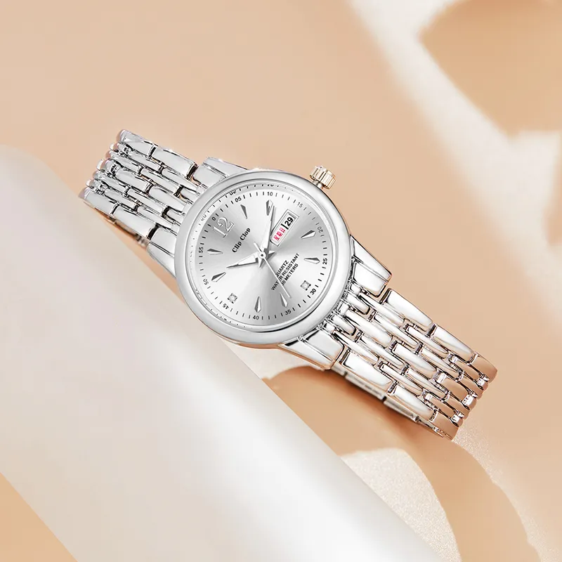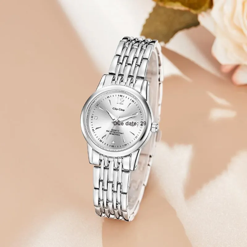 Clip Clop Кварцевый механизм сплав ремешок женские часы серебристый циферблат