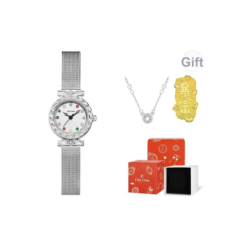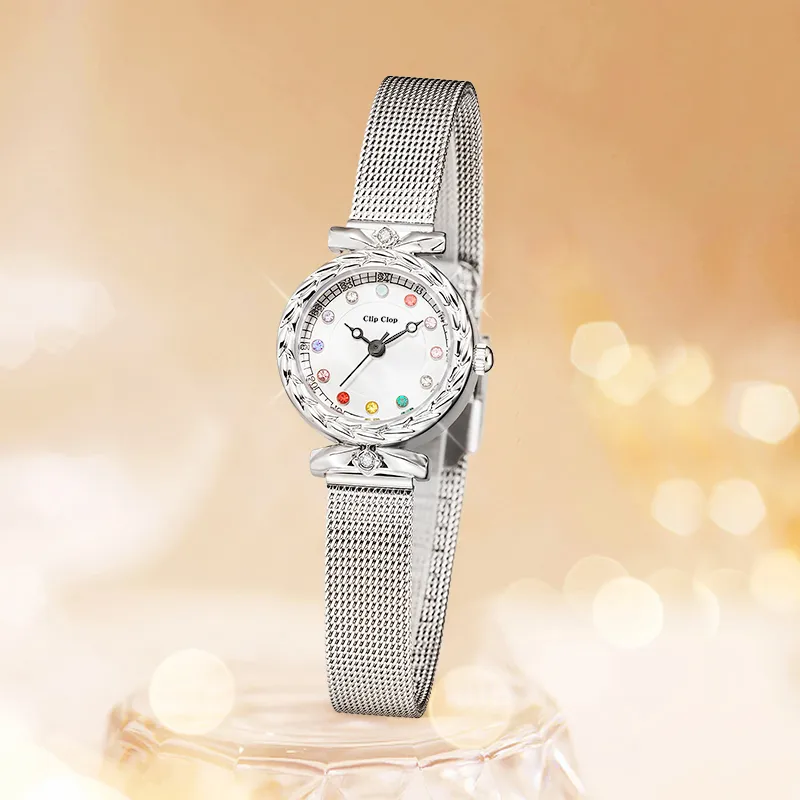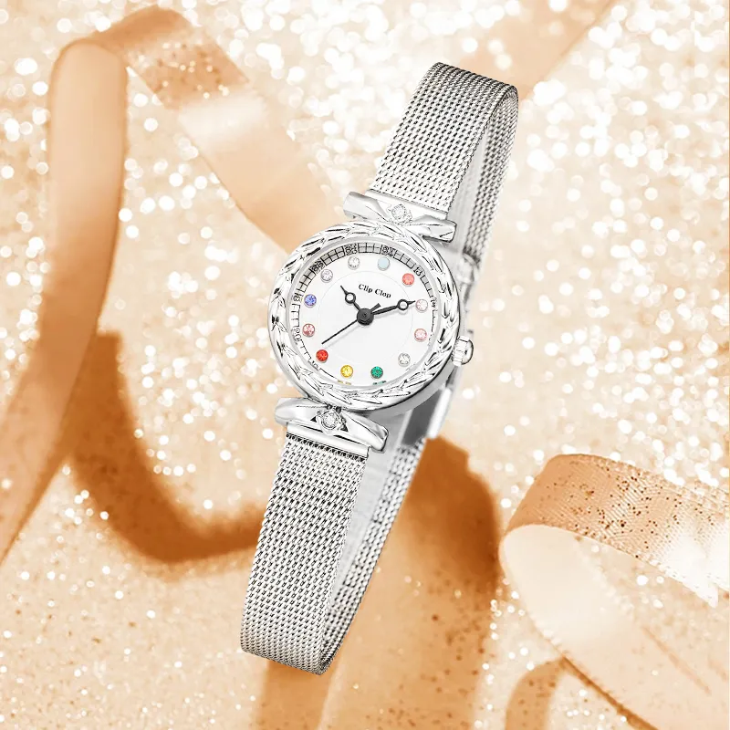 Clip Clop Кварцевый механизм металлический ремешок женские часы белый циферблат