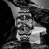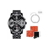 Черный циферблат, черный ремешок, оригинальная коробка + ожерелье + бесплатный регулировщик часов