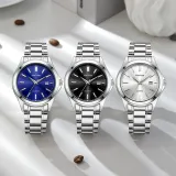 Серебряный ремешок, синий циферблат, оригинальная коробка + ожерелье + включает регулировщик часов
