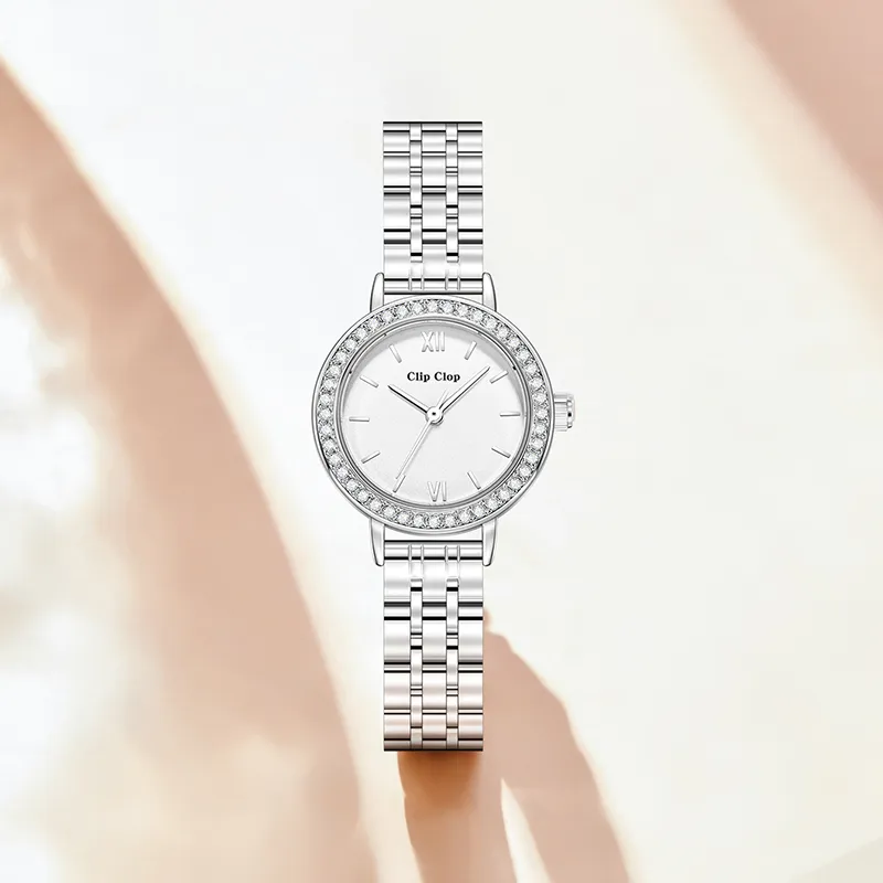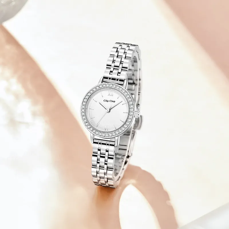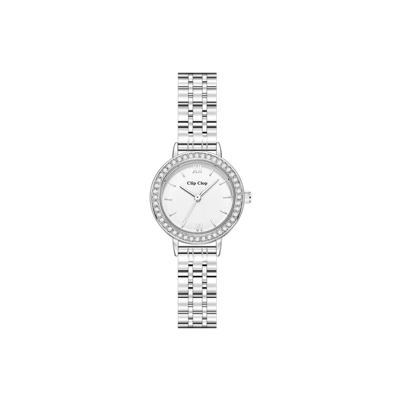 Clip Clop Кварцевый механизм ремешок из нержавеющей стали женские часы белый циферблат