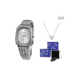 Серебряный ремешок, черный циферблат (оригинальная коробка) + ожерелье + открывалка для часов