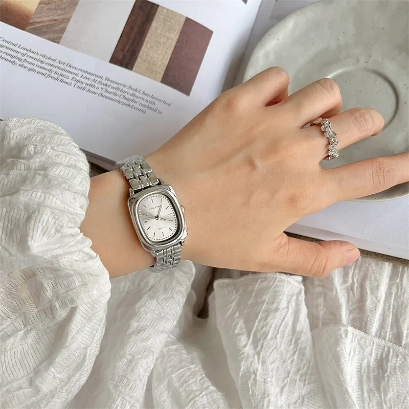 Clip Clop Кварцевый механизм ремешок из нержавеющей стали женские часы белый циферблат