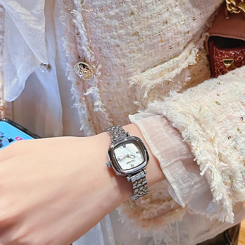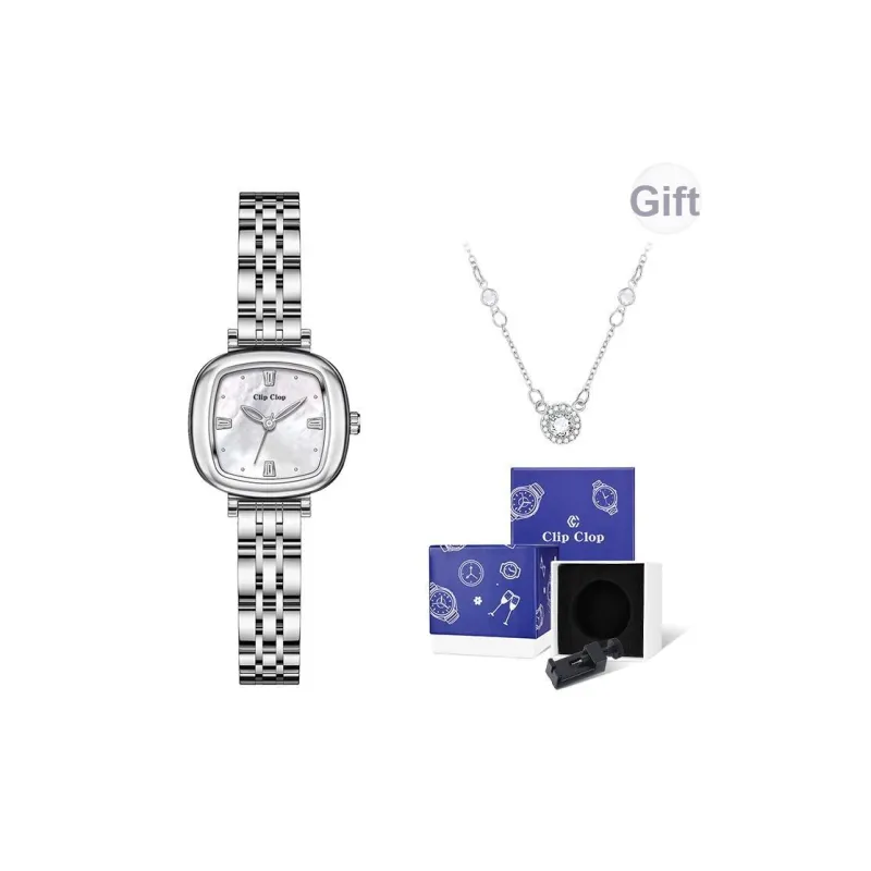 Clip Clop Кварцевый механизм ремешок из нержавеющей стали женские часы белый циферблат