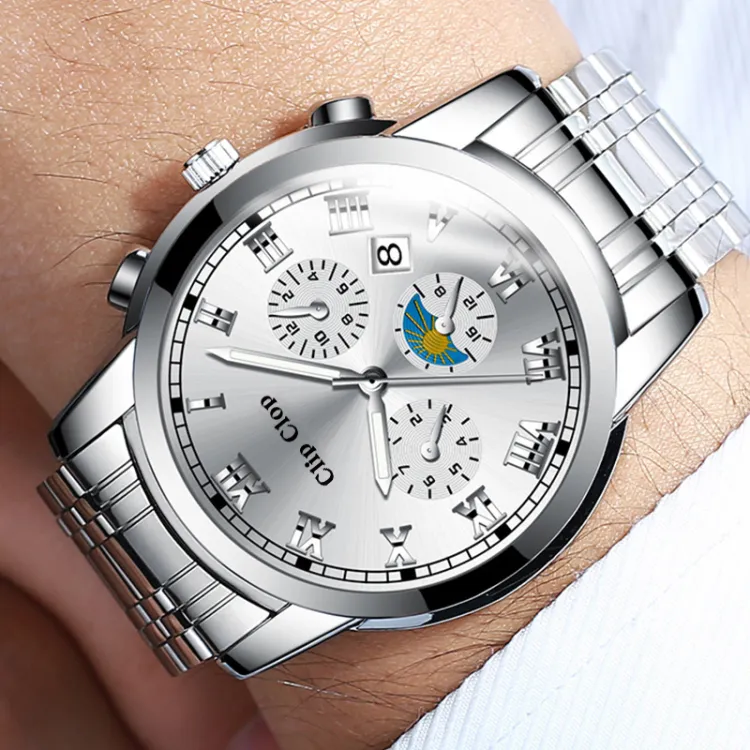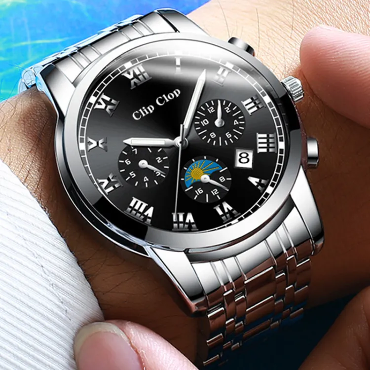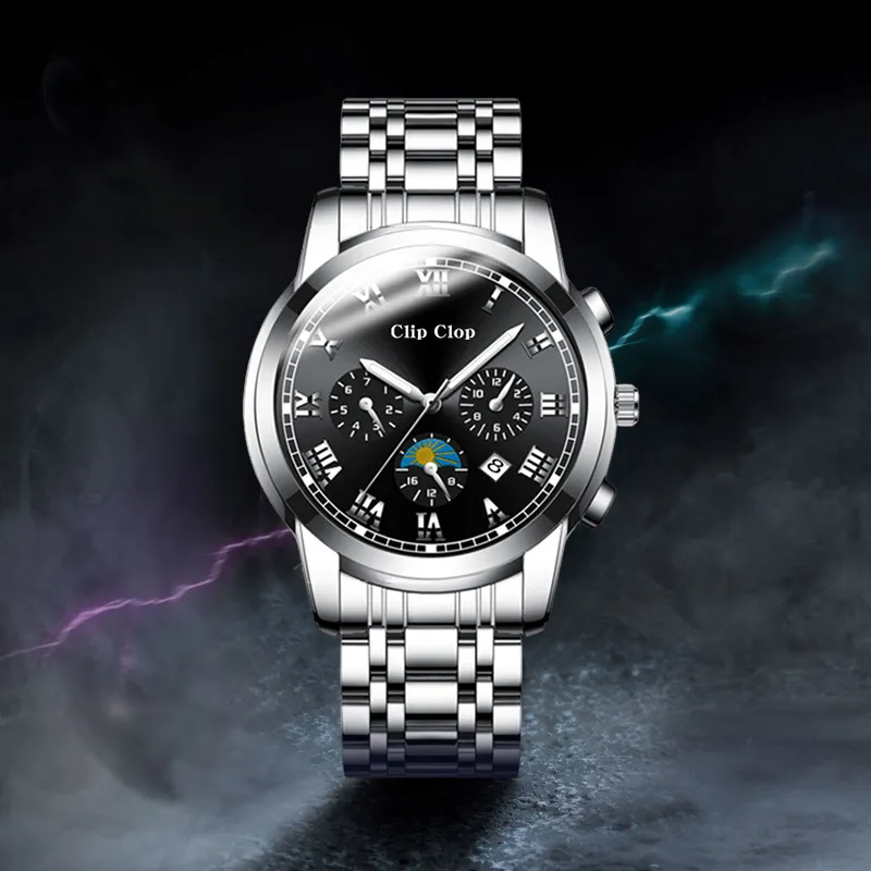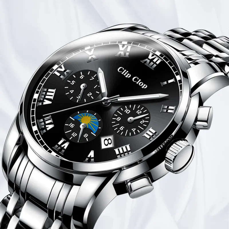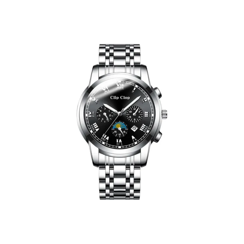 Clip Clop Кварцевый механизм стальной ремешок мужские часы черный циферблат