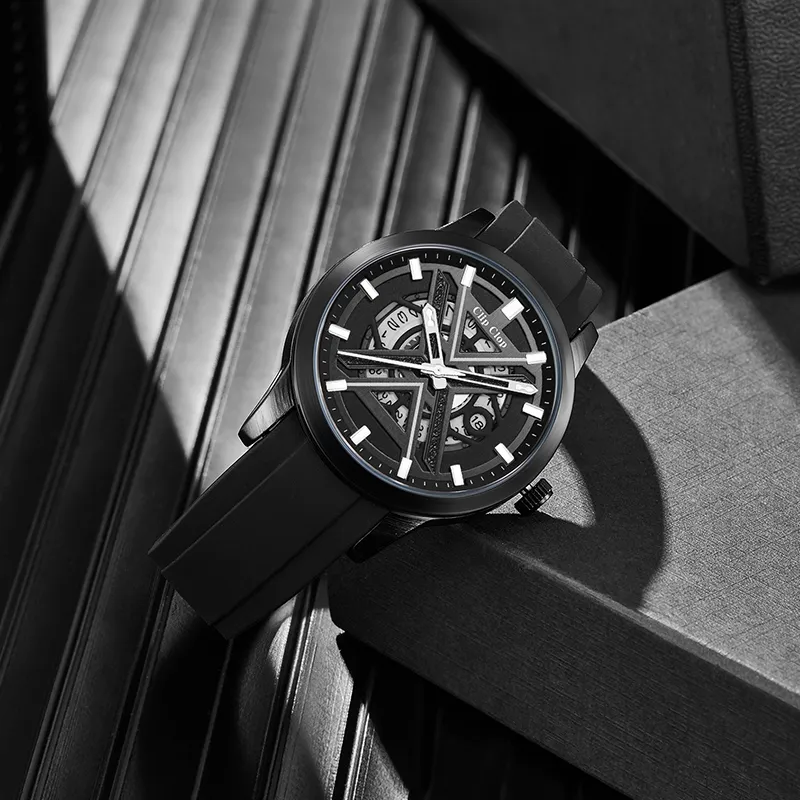 Clip Clop Students Party Individual Trendy Мужские часы Кварцевый механизм Силиконовый ремешок Черный циферблат Часы Мужские