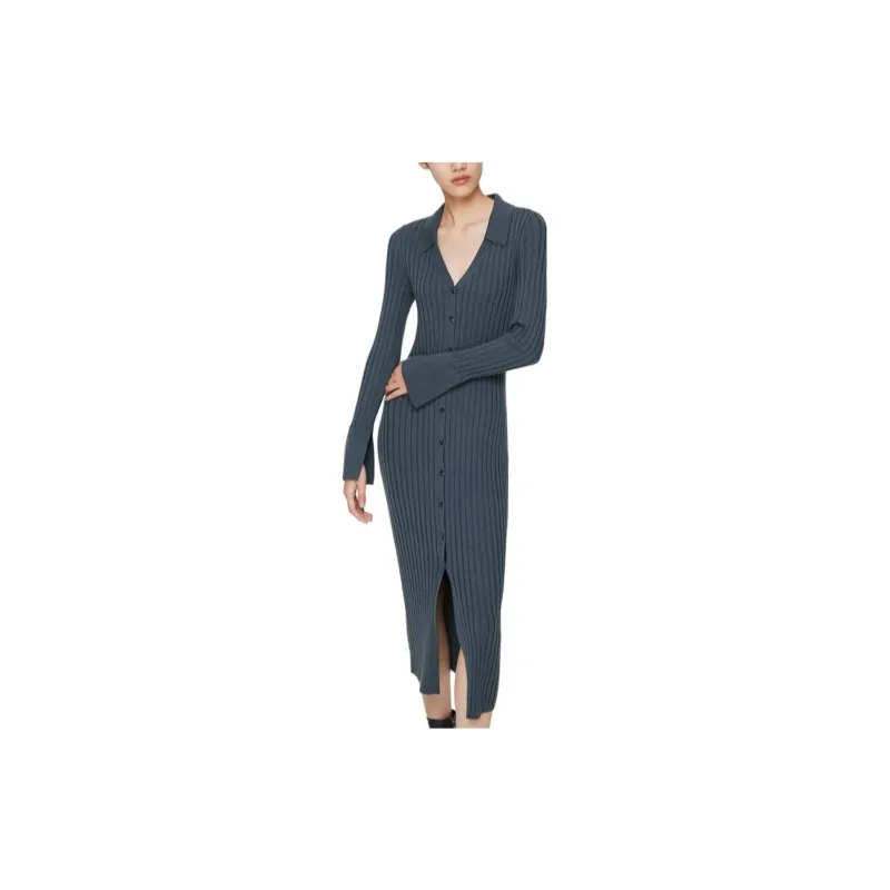 CLUB MONACO Длинное платье с длинными рукавами женское вороний
