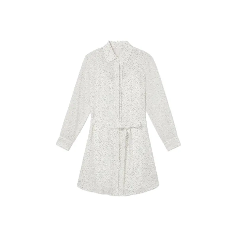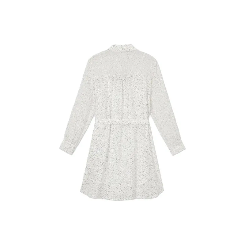 CLUB MONACO Длинное платье с длинными рукавами женское белое с черной точкой