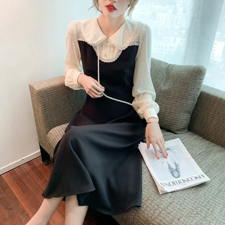 CLUB NEWS Длинное платье с длинными рукавами женское черное