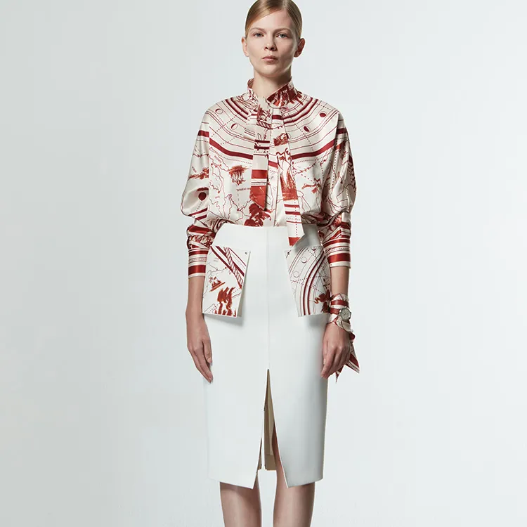 CM x IWC Геометрический узор Рубашка Осенний и Зимний Женская