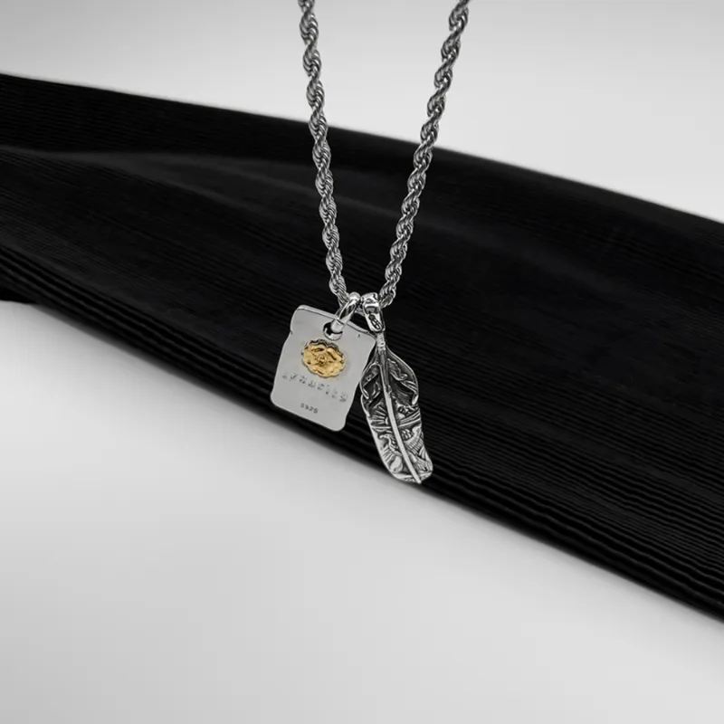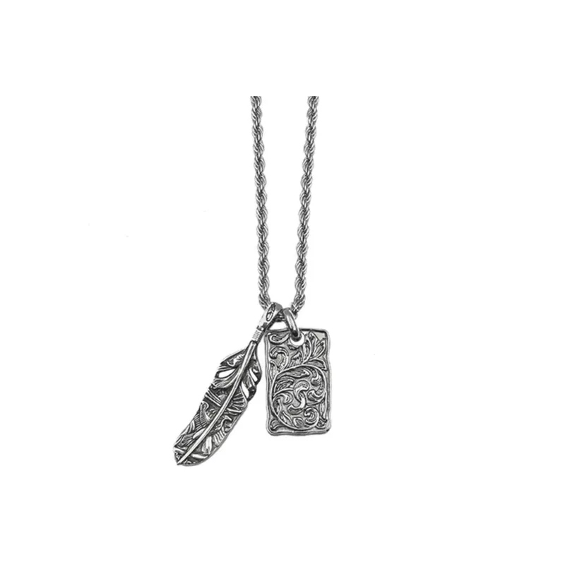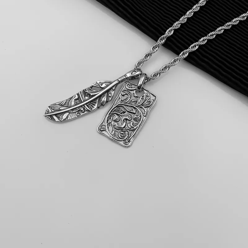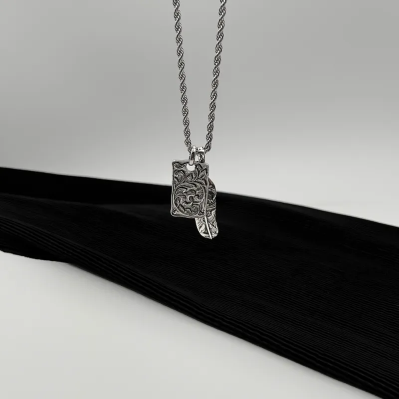 CMLZIUA Титановая сталь EAGLE Перо Tangcao Узор Relief Necklace Унисекс
