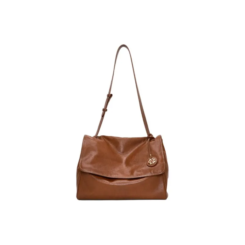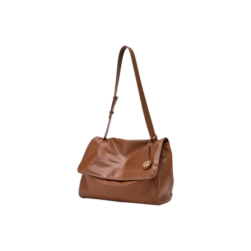 CNC Коровья кожа Сумка на плечо Стандартная Женская Кофейного цвета
