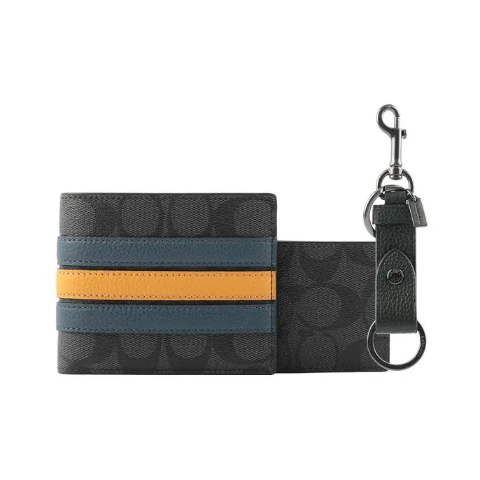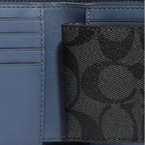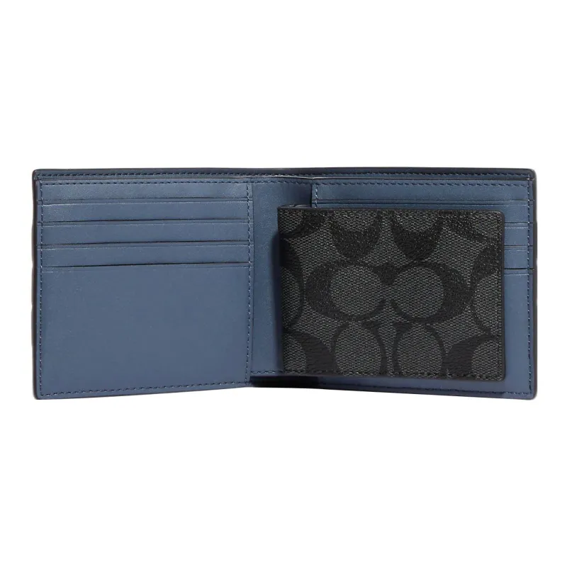 COACH 3 IN 1 Wallet Холст с Галечная кожа Держатель для карт кошелек Мужской Уголь с Деним Цвет