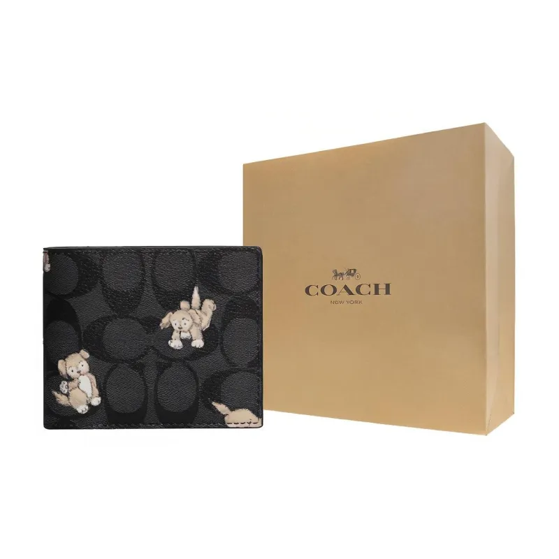 COACH 3 IN 1 Wallet Подпись Покрытый холст Держатель для карт Кошелек Стандартный Мужской Черный
