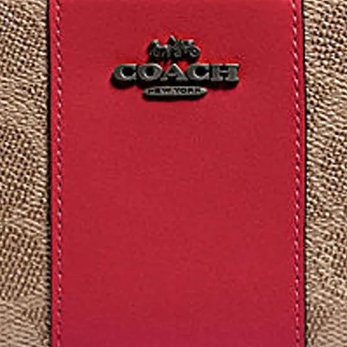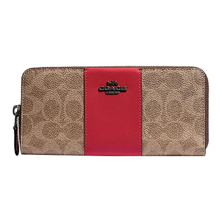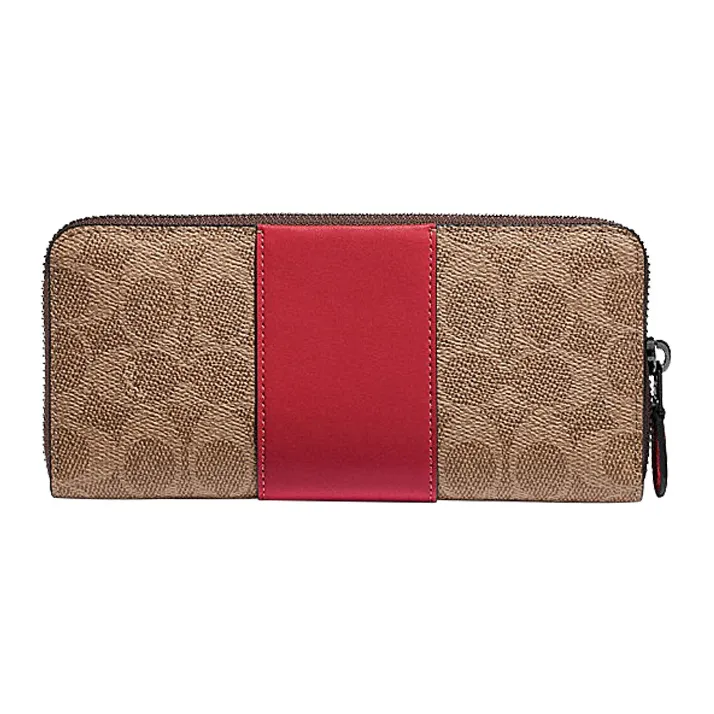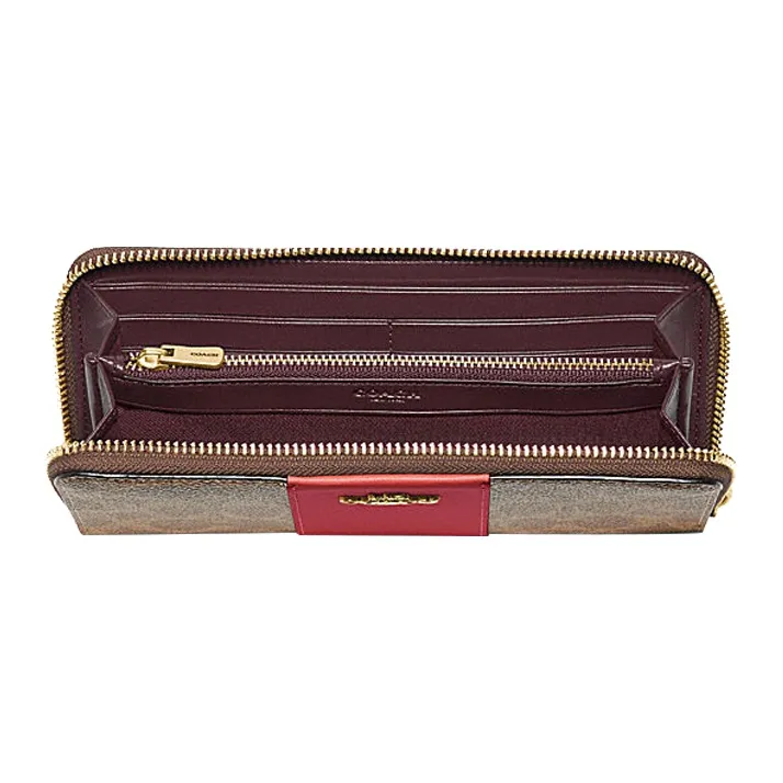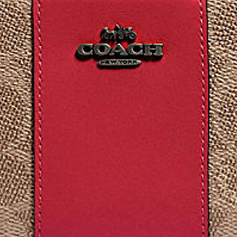 COACH Аккордеонный кошелек Покрытие холст с кожаными вставками Клатч Кошелек Женский Хаки Коричневый и Красный Яблоко