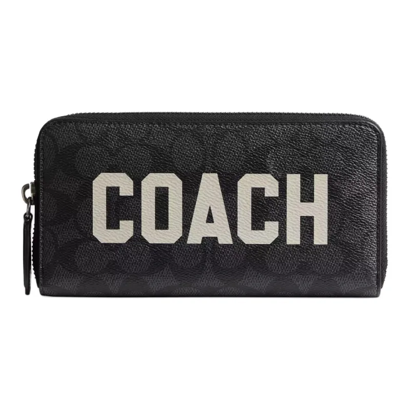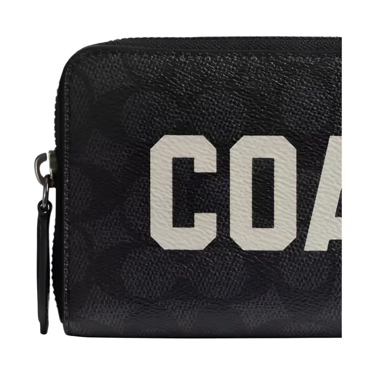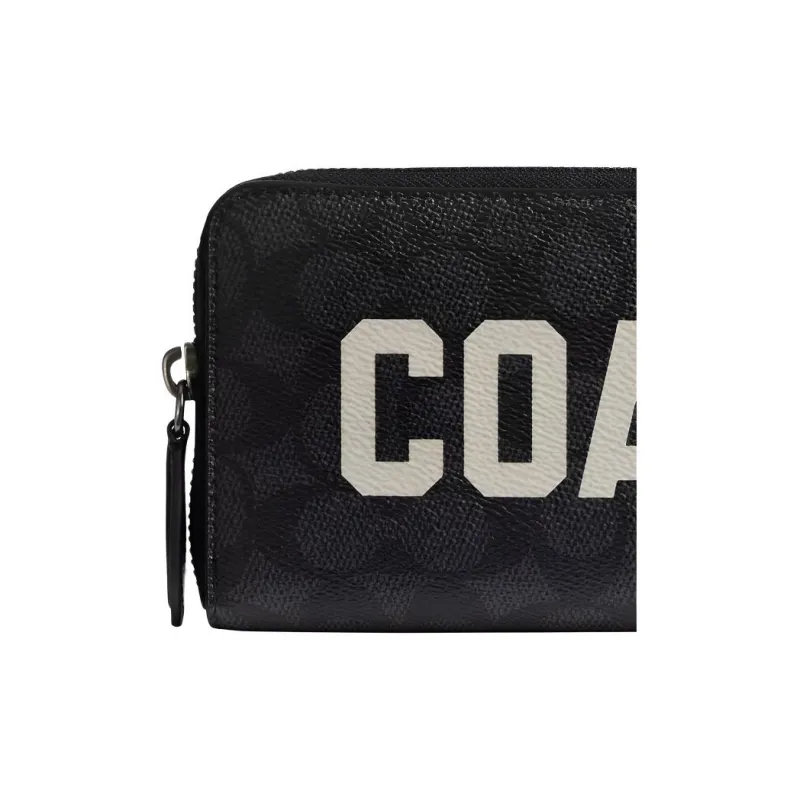 COACH Аккордеонный кошелек Фирменный Покрытый холст с утонченной телячьей кожей Маленький Унисекс Угольный Многоцветный