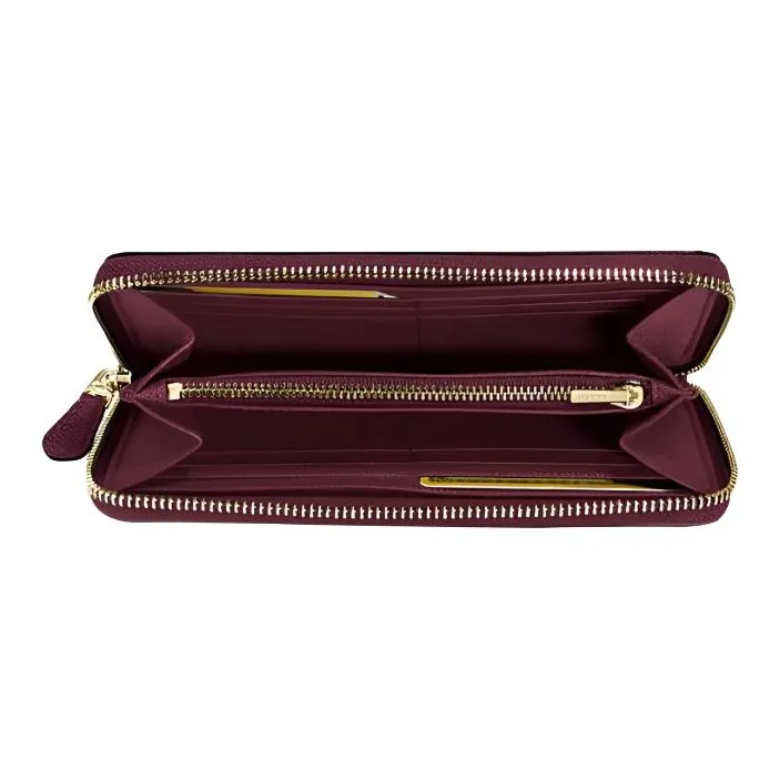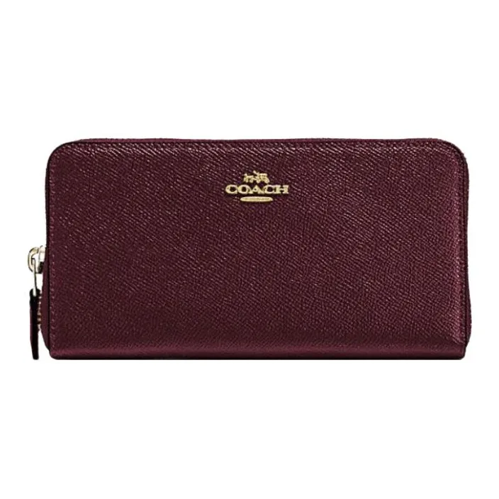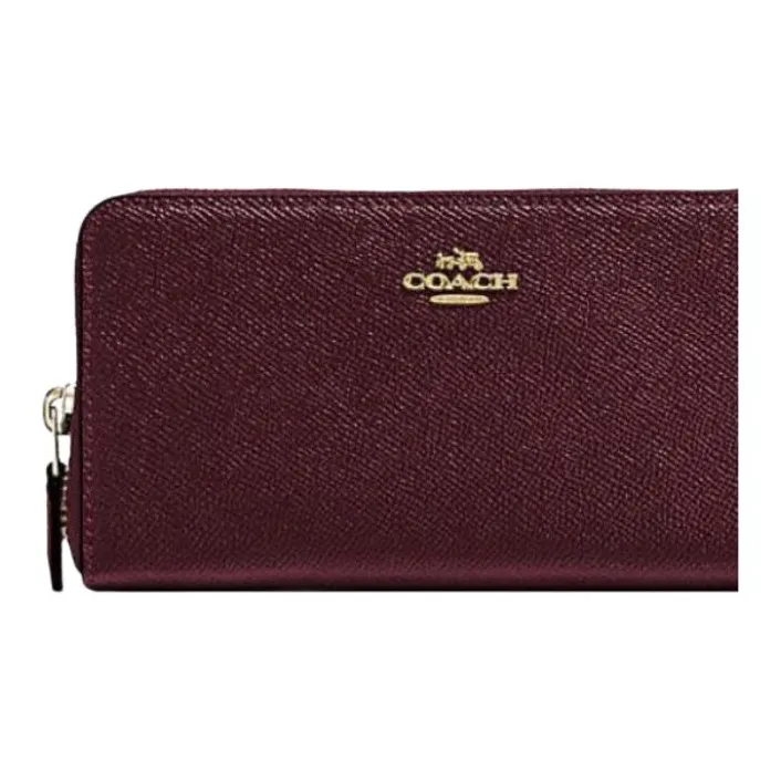 COACH Accordion Zip Крестовая текстура Кожа Держатель для карт Кошелек Женский Темный Темно-красный