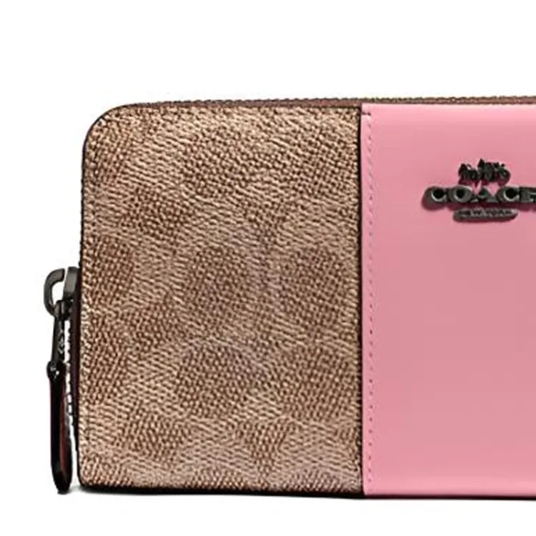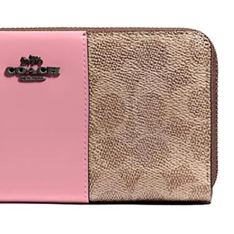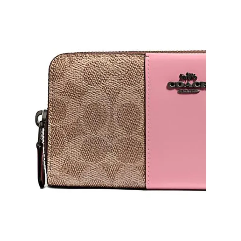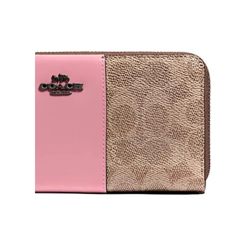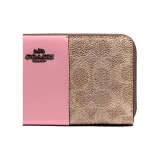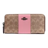 COACH Accordion Zip Wallet Classic Monogram Покрытый холст с кожаными вставками Кошелек Клатч Женский Хаки Коричневый и Розовый