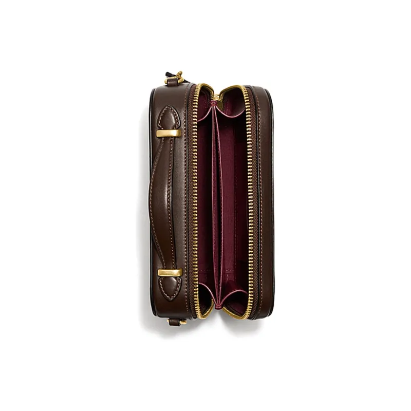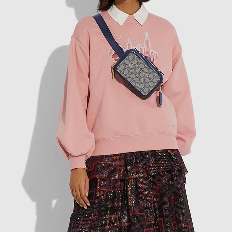 COACH Alie Холст с кожей Коробка Сумка Camera Сумка Портативная Одно плечо Через плечо Бананка Мини Женская