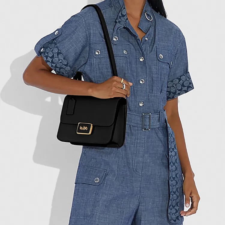 COACH Alie Кожа Курьерская Сумка Маленькая Квадратная Сумка Сумка через плечо Сумка на плечо Женская Черная