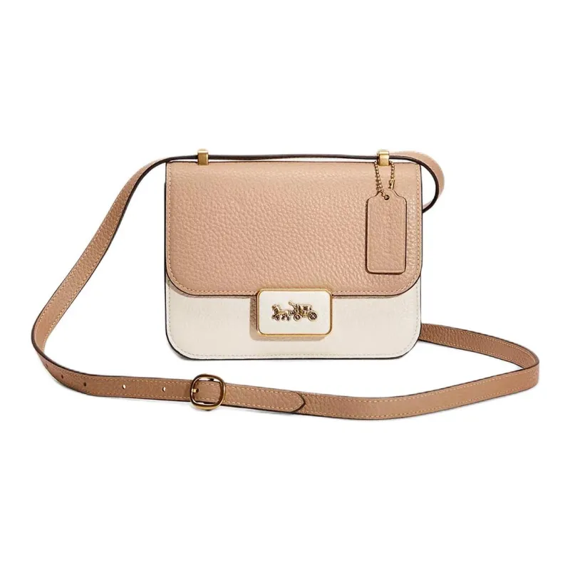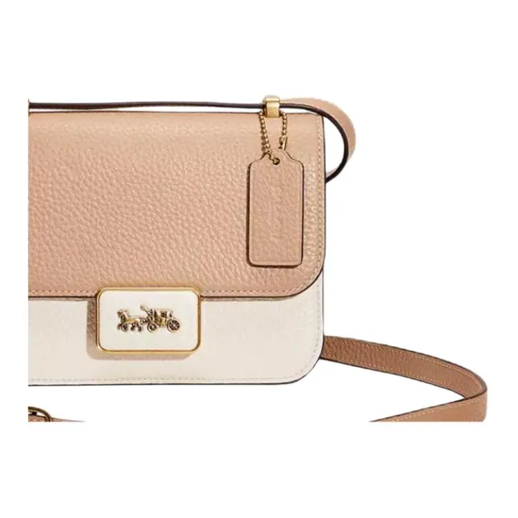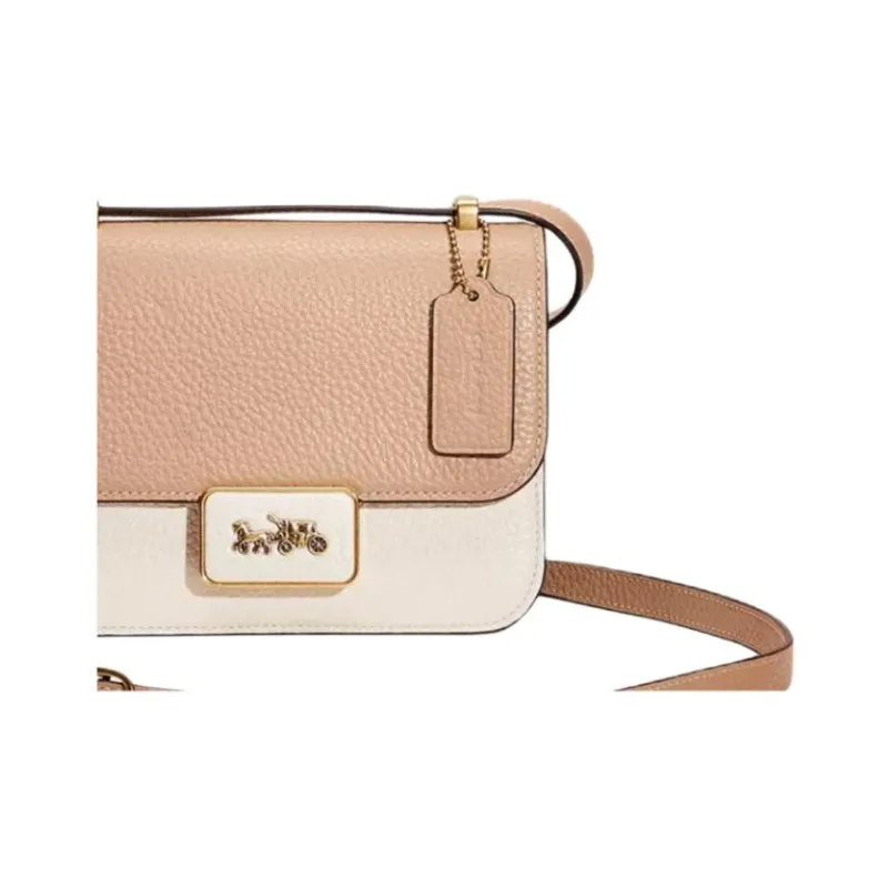 COACH Alie Кожа Маленькая Квадратная Сумка Сумка через плечо Сумка на плечо Женская Белая и Тауповая
