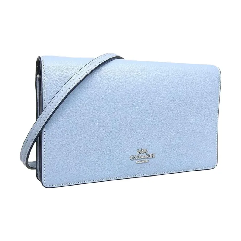 COACH Anna Личи Зернистая текстура Кожа Маленькая Квадратная Сумка Клатч Сумка через плечо Сумка на плечо Женская Светло-синяя