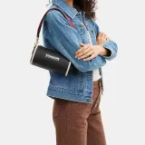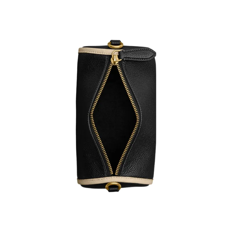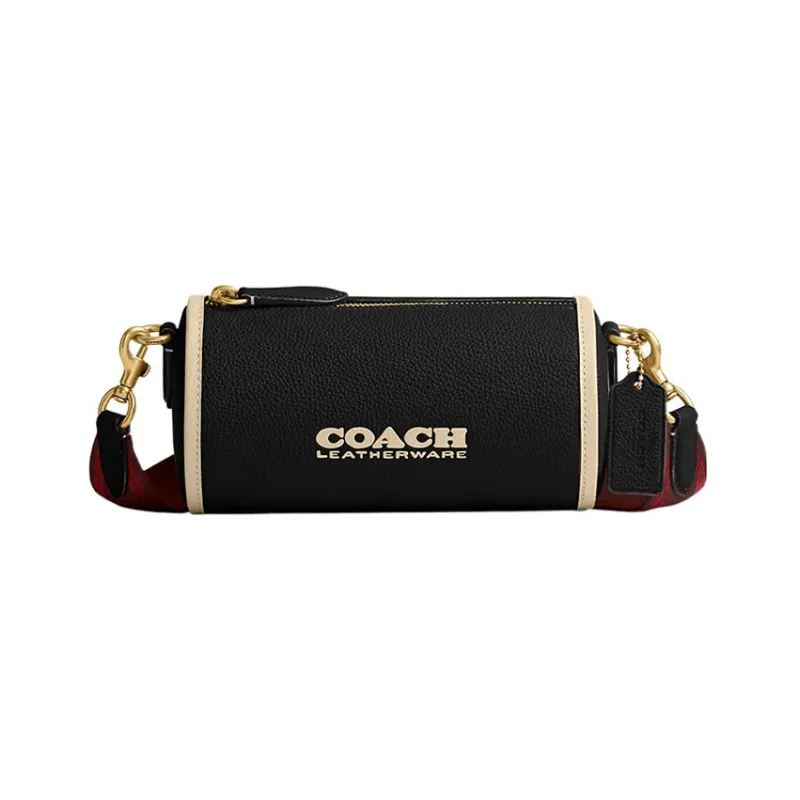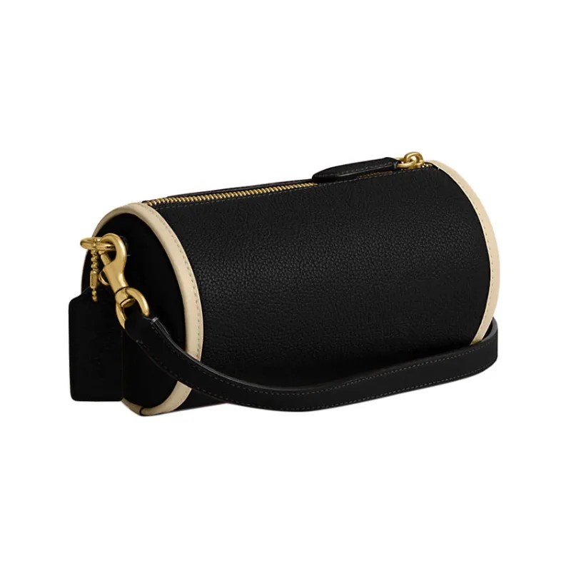 COACH Barrel Пескоструйная кожа Цилиндрическая сумка Сумка через плечо Большая Женская Черная