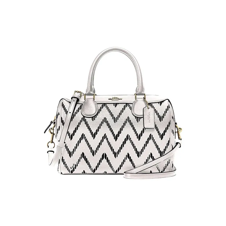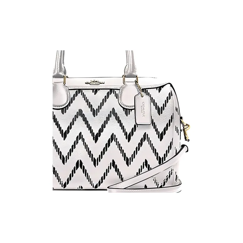 COACH Bennett Покрытие Холст с Гладкой Коровьей Кожей Сумка Средний Унисекс Черный Белый