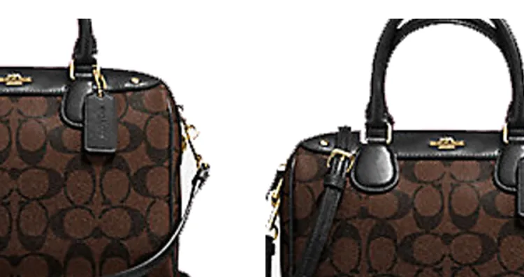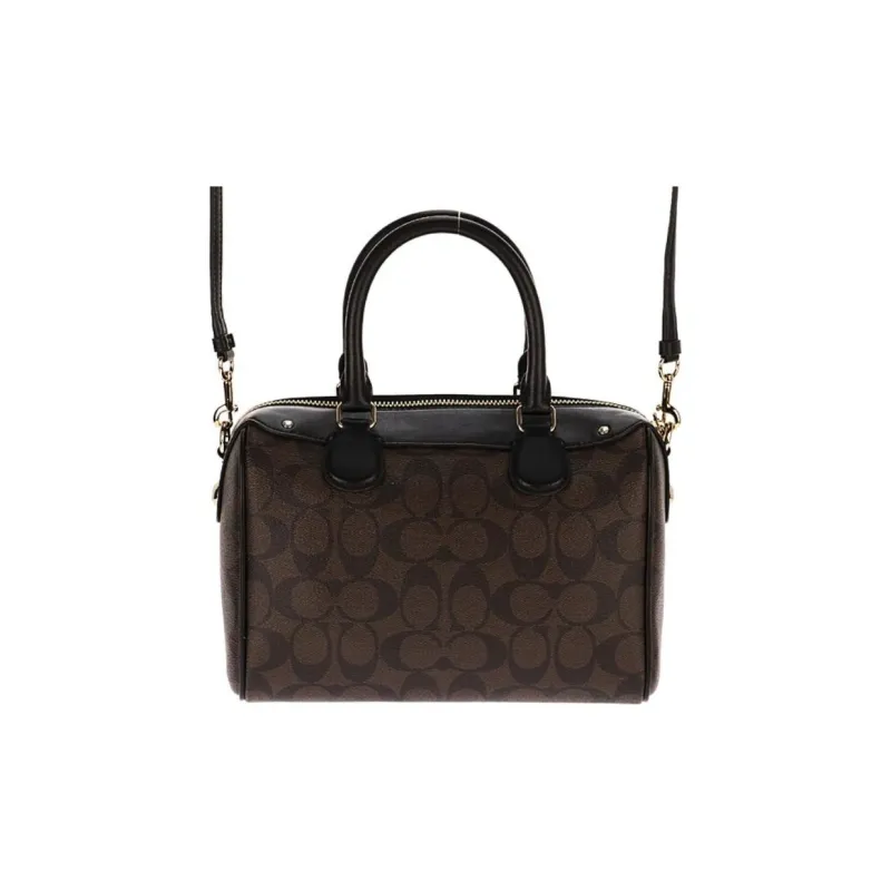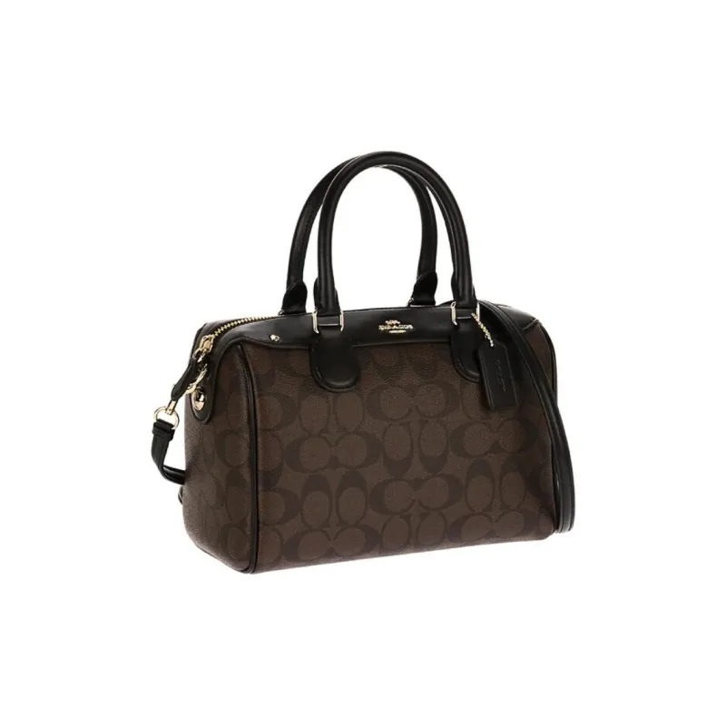 COACH Bennett Monogram Холст PVC Кожа Сумка Мини Женская Темно-Коричневый