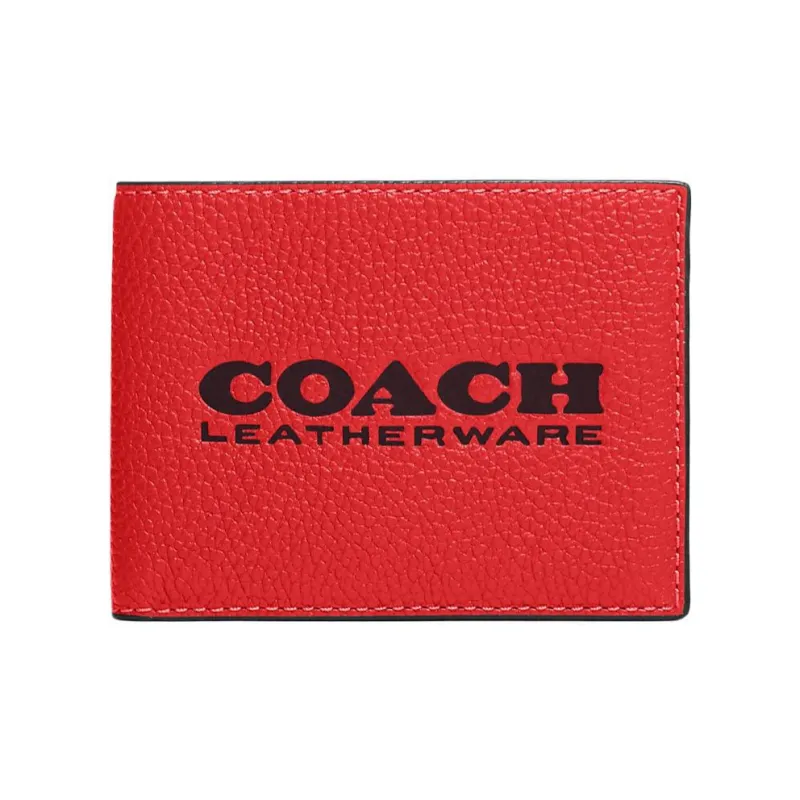 COACH Держатель для карт из полированной галечной кожи кошелек для мужчин спортивный красный красный цвета крови