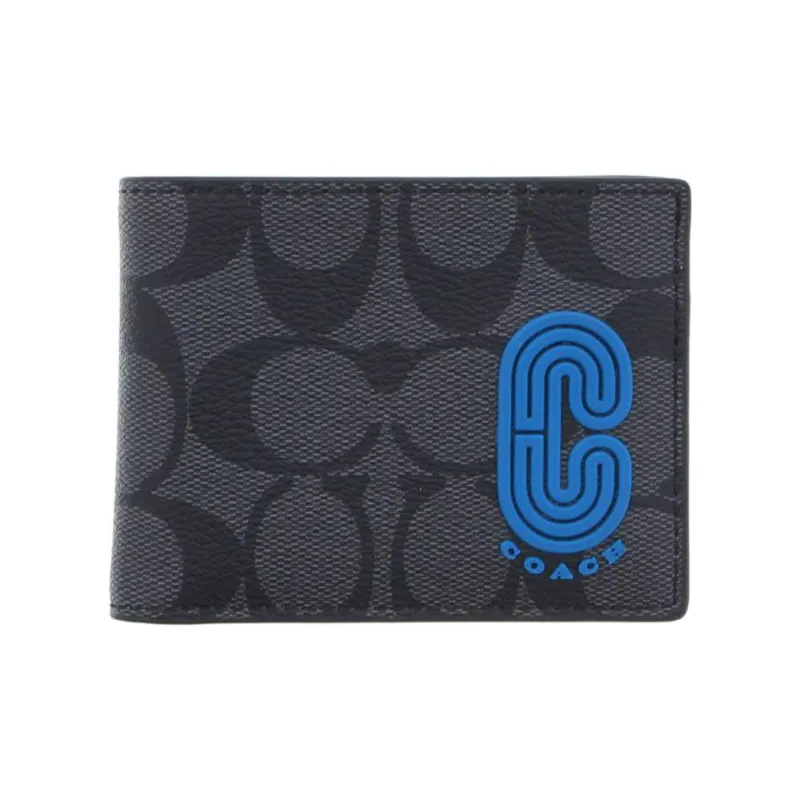 COACH Держатель для карт из кожи с вставками кошелек мужской медный углеродный синий