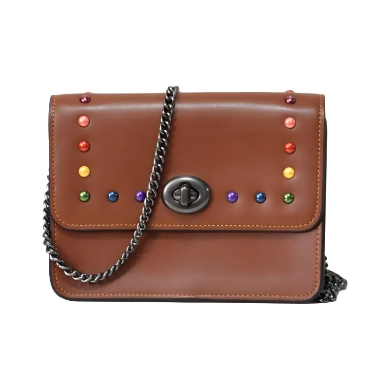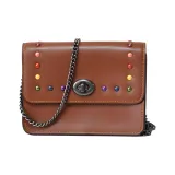 COACH Bowery Покрытый холст с кожей сумка через плечо маленькая женская коричневый