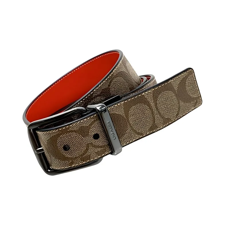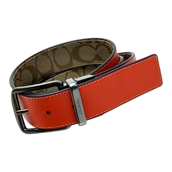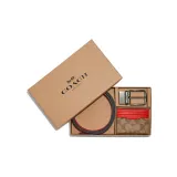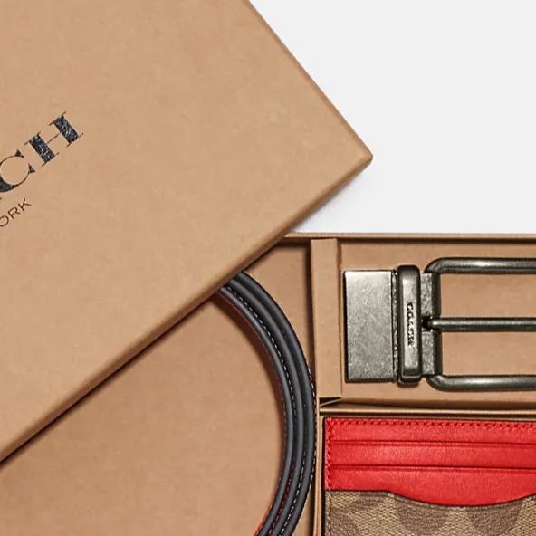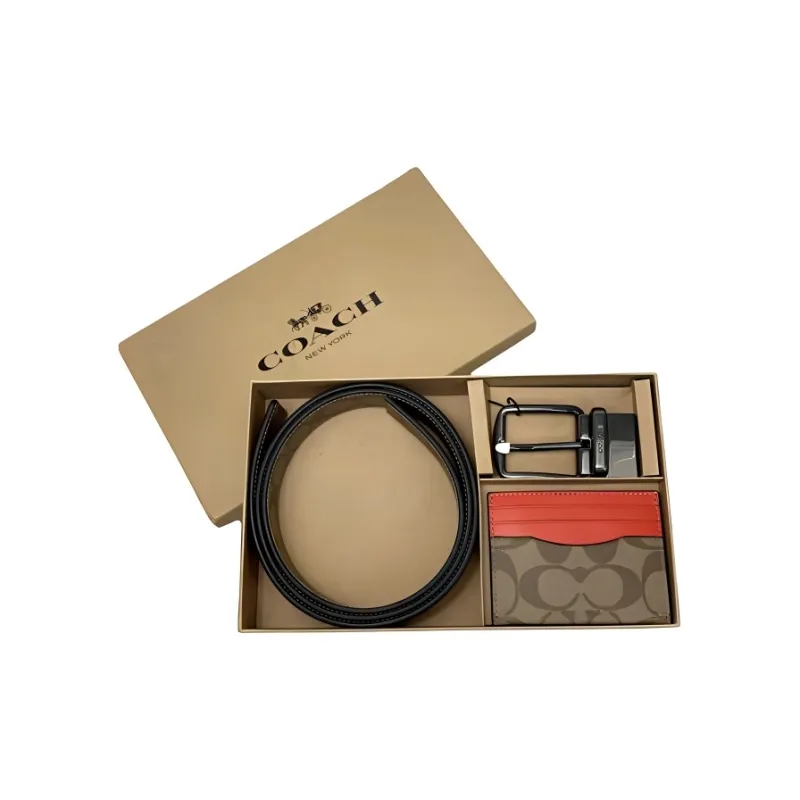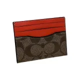 COACH Boxed Покрытый холст с утонченной телячьей кожей мужская визитница оранжево-хаки красный