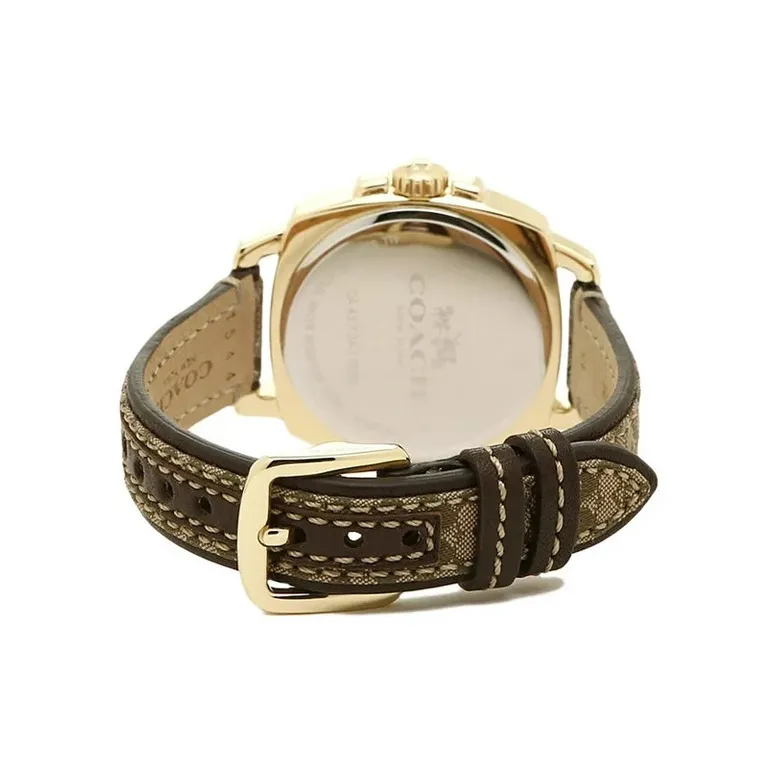COACH BOYFRIEND Collection Женские часы Кварцевый механизм Естественная кожа Ремешок 33 мм Золотистый циферблат