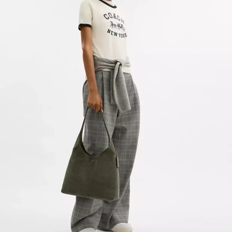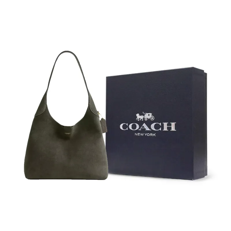 COACH Brooklyn Замша Плечевая Сумка Большая Женская Оливково-Зеленая