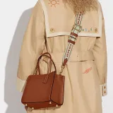 COACH Cashin Кожа Тоте Сумка Сумка для покупок Ручная сумка Сумка через плечо Маленькая Женская Коричневая