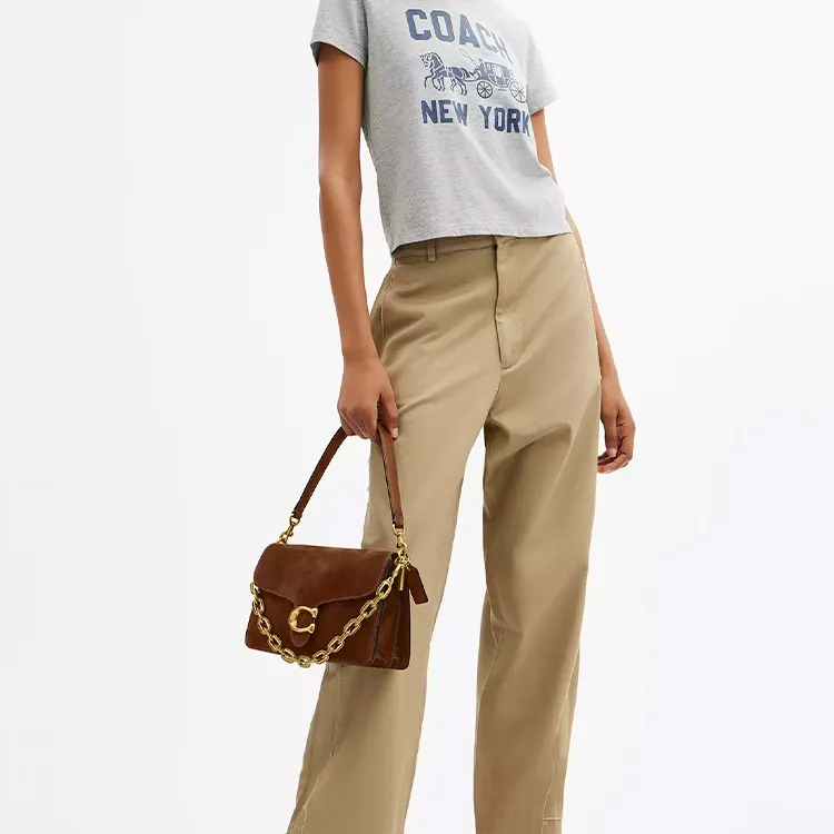 COACH Цепочка Suede Сумка через плечо Сумка на плечо Средняя Женская Латунь и Теплый Коричневый