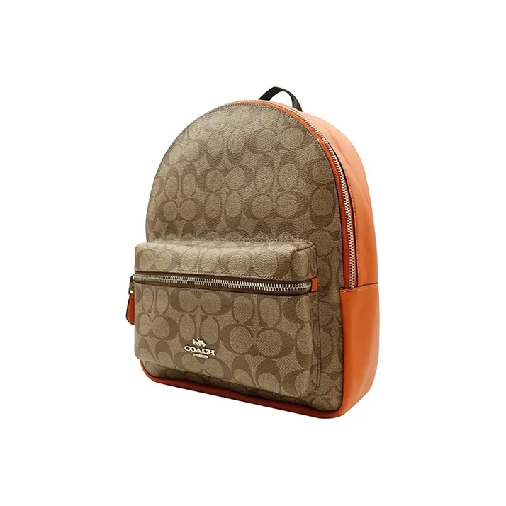 COACH Charlie Canvas Leather Backpack Medium Women's Monogram Orange COACH Charlie Холст Кожа Рюкзак Средний Женский Монограмма и Оранжевый