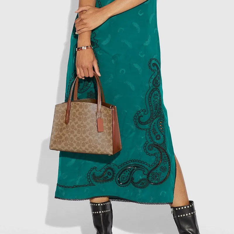 COACH Charlie Коровья кожа Ноутбук Сумка Доска для написания Сумка через плечо Сумка Обычная Женская Коричневая с монограммой