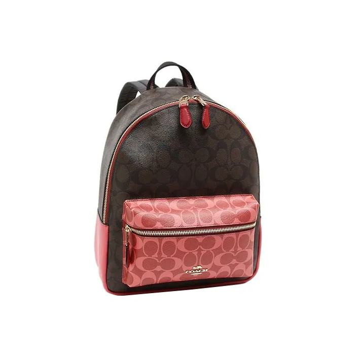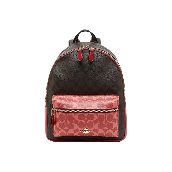 COACH Charlie ПВХ Рюкзак Средний Женский Красный Розовый и Черный Коричневый