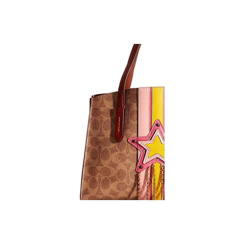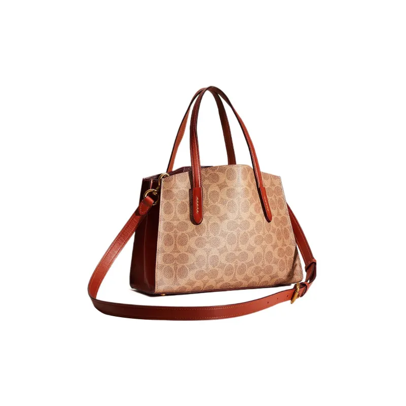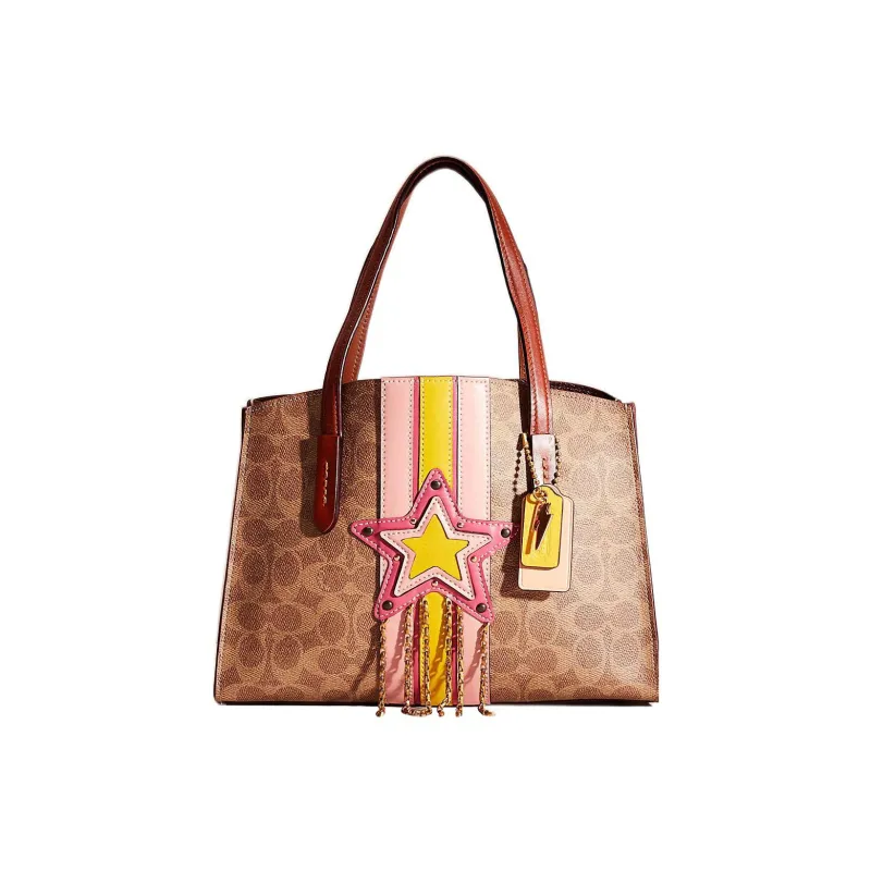 COACH Charlie Покрытый холст с коровья кожа Тоут Сумка Сумка для покупок Сумка на плечо Сумка Большая Женская Коричневая с монограммой