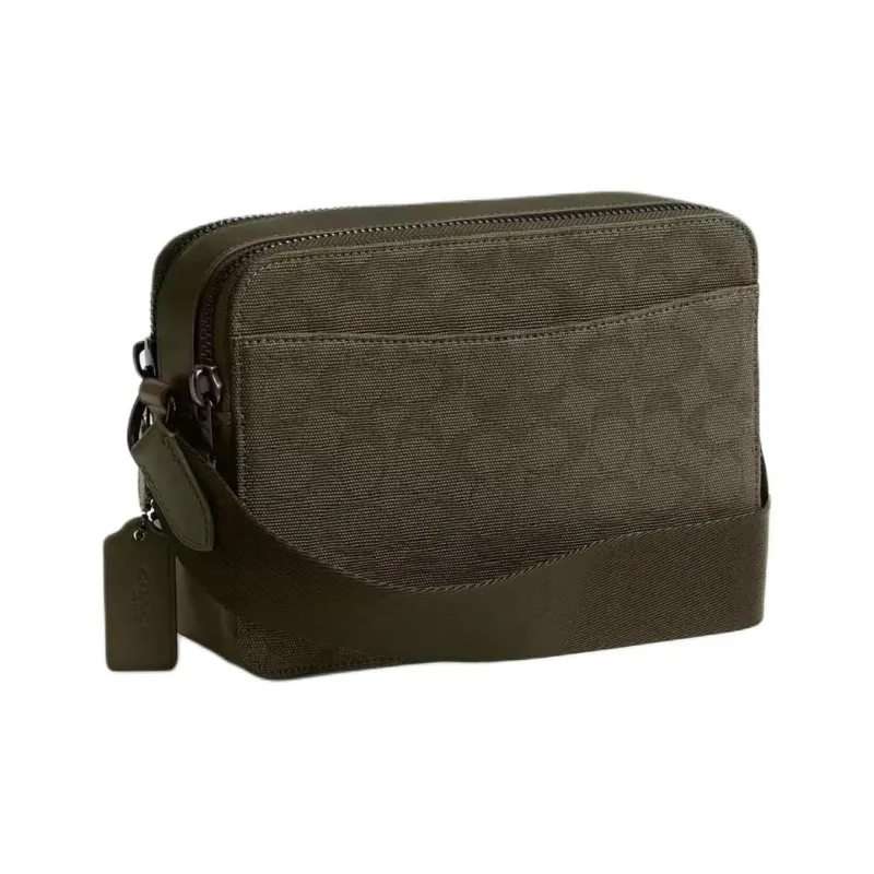 COACH Charter ICONIC Холст Jacquard Телячья кожа Сумка через плечо Средняя Мужская Армейский зеленый