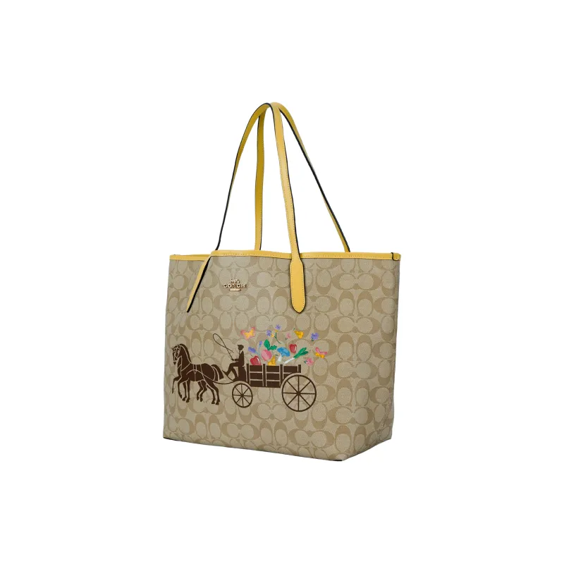 COACH Городская искусственная кожа Тоут Сумка Сумка для покупок Сумка Сумка через плечо Женская Хаки